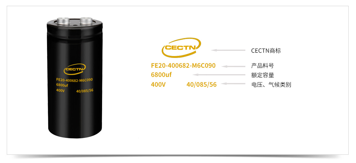 ? ? ? ? 铝电解电容的料号又两个部分组成,上面是CECTN商标,下面为电解电容型号,包含订购代码、电压、容量、温度、寿命、安装方式等信息。详细了解请点击进入《金年会铝电解电容料号说明》页面。