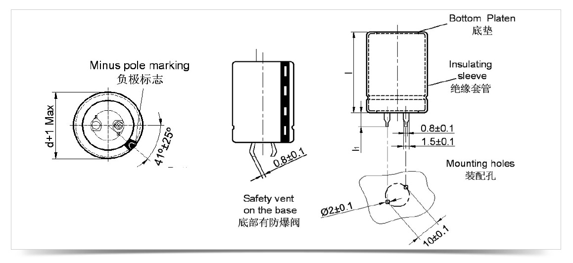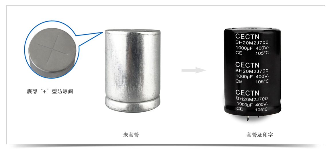 CECTN电解电容采用EPS(聚苯乙烯泡沫)材料制成的下垫进行固定,EPS材质具有良好的防水、放撞击、抗挤压等特性,能够更好的保护电解电容。