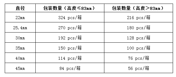 根据电解电容直径的不同,CECTN电容每箱包装数量分为下表中六种: